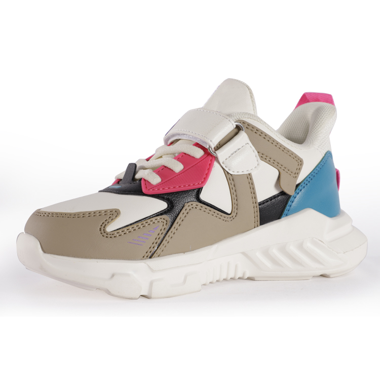 This is a children's sports shoes, one of the latest products of JIAN ER Shoes Company. It is a children's casual running shoe with a cute and fashionable appearance. The upper is made of leather material, the shape is more stable, and the multi-color stitching is full of childishness.Velcro design, easy to put on and take off, convenient to travel. TPU wings pattern decoration on the side of the shoe, cute and fashionable, the shape that children like.Stable heel design for easy lifting. The insole is a mesh design, breathable and comfortable.The sole made of MD material is wearable,soft, flexible, and light, which can meet the needs of children's sports.The bottom of the outsole of the shoe has a concave-convex texture design, which has a non-slip effect.Children's exclusive design sports shoes, a colorful trend.A variety of colors are available.It is suitable for children's sports, running, walking, going to school and going out to play.This children's shoe is designed from a child's perspective to meet the needs of children to wear shoes.If you want to customize children's shoes, I recommend this one for you, hot selling, stylish and lovely.The minimum order quantity is 500 pairs per color and 2000 pairs per style. If the quantity is more, the price will be more cost-effective.